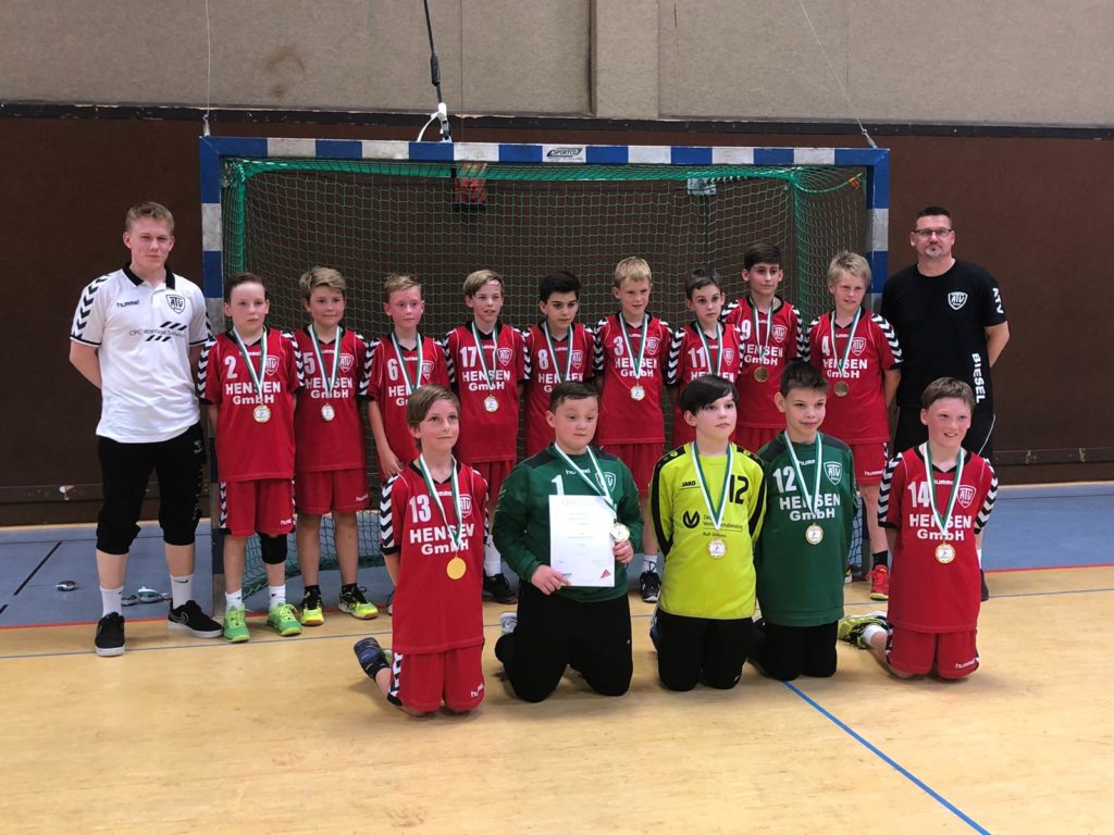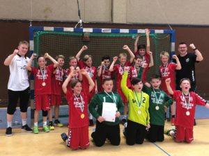 Die Jungs wussten jetzt, hier geht heute etwas und dementsprechend knapp wurde es gegen den TV 1848, der sich auch Hoffnungen auf den Titel machte, am Ende siegten die Jungs mit 3:4. Jetzt gab es kein Halten mehr, da der direkte Vergleich gewonnen wurde standen die Jungs schon vor dem letzten Spiel als Stadtmeister fest, das wurde gegen die Turnerschaft Lürrip dann auch noch mit 7:1 gewonnen und am Ende standen wir mit 10:0 Punkten ganz oben.