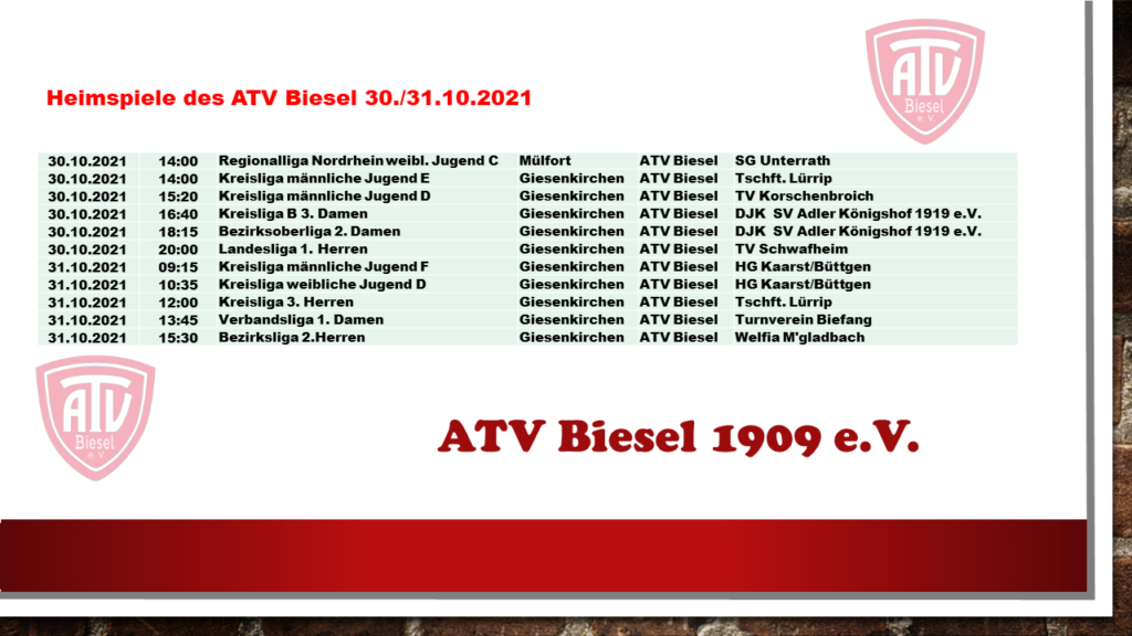Alle Spiele des ATV Biesel 30./31.10. ATVBiesel 29. Oktober 2021 Allgemein teilen teilen teilen teilen merken teilen teilen teilen teilen Beitrags-Navigation Zurück Vorheriger Beitrag: Heute Jahreshauptversammlung des ATV !Weiter Nächster Beitrag: Aktuelle Corona-Situation