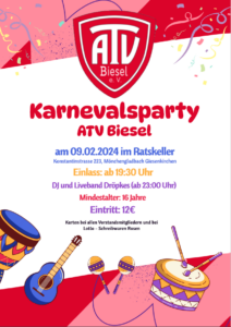Karnevalsparty des ATV ! ATVBiesel 6. Januar 2024 Allgemein Karnevalsparty-Infos als pdf downloaden! teilen teilen teilen teilen merken teilen teilen teilen teilen Beitrags-Navigation Zurück Vorheriger Beitrag: Presseerklärung des ATV Biesel e.V. Weiter Nächster Beitrag: Nachruf Hans-Peter Boeken